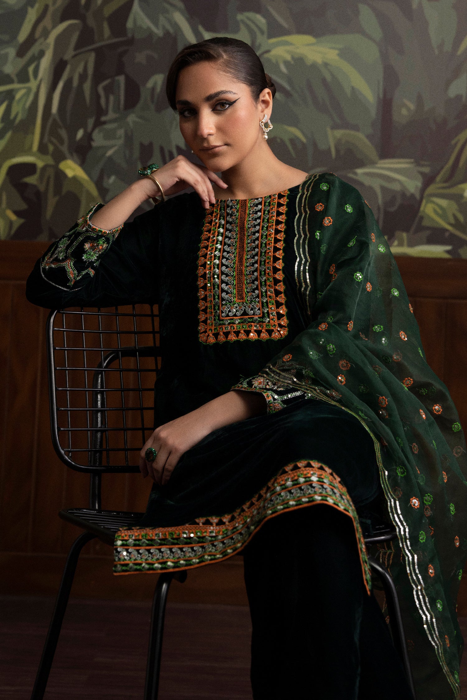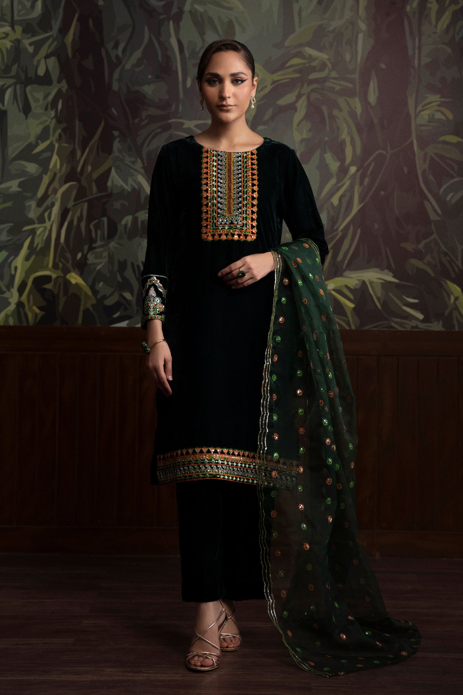 Dyed Embroidered Premium Velvet Shirt Sleeves