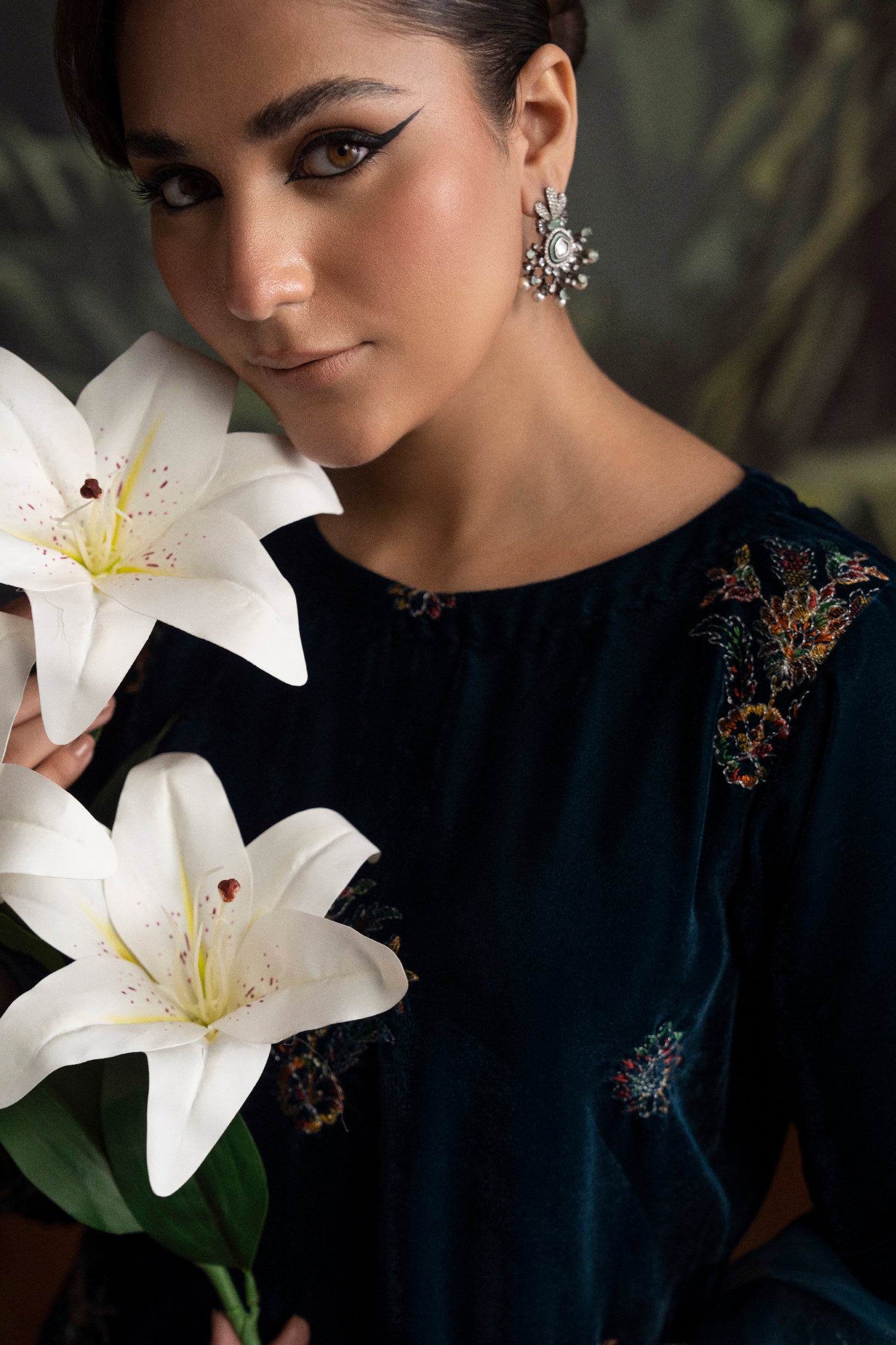 Dyed Embroidered Premium Velvet Shirt Sleeves