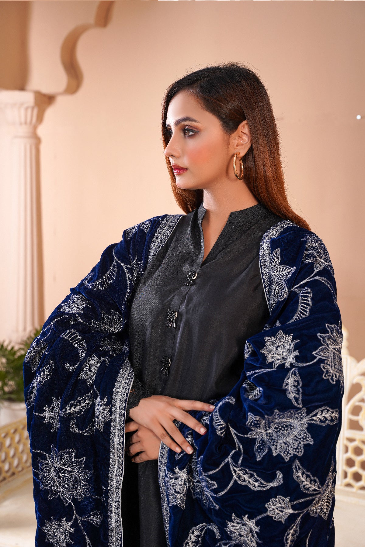 ShawlColor: Navy BlueFabric: Premium Micro Velvet, Embroidered