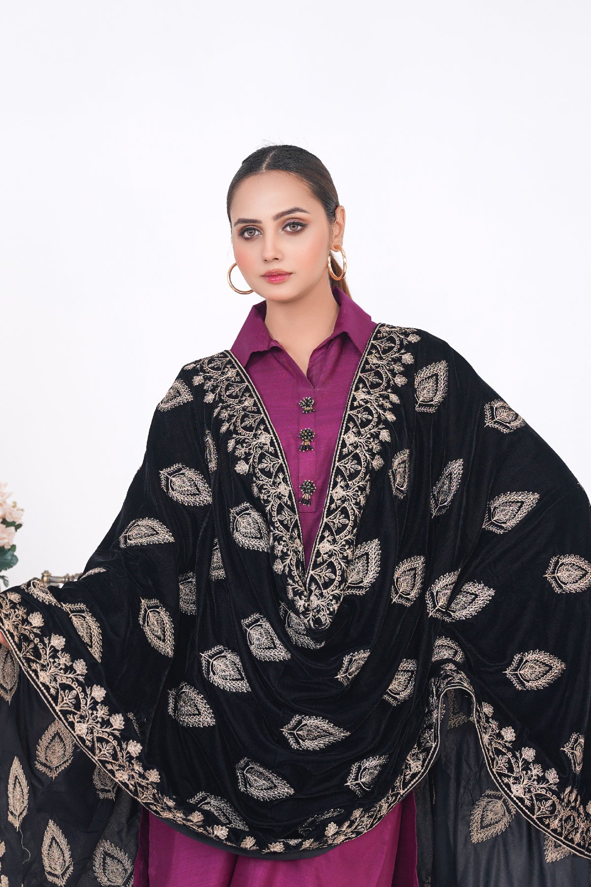 ShawlColor: BlackFabric: Premium Micro Velvet, Embroidered