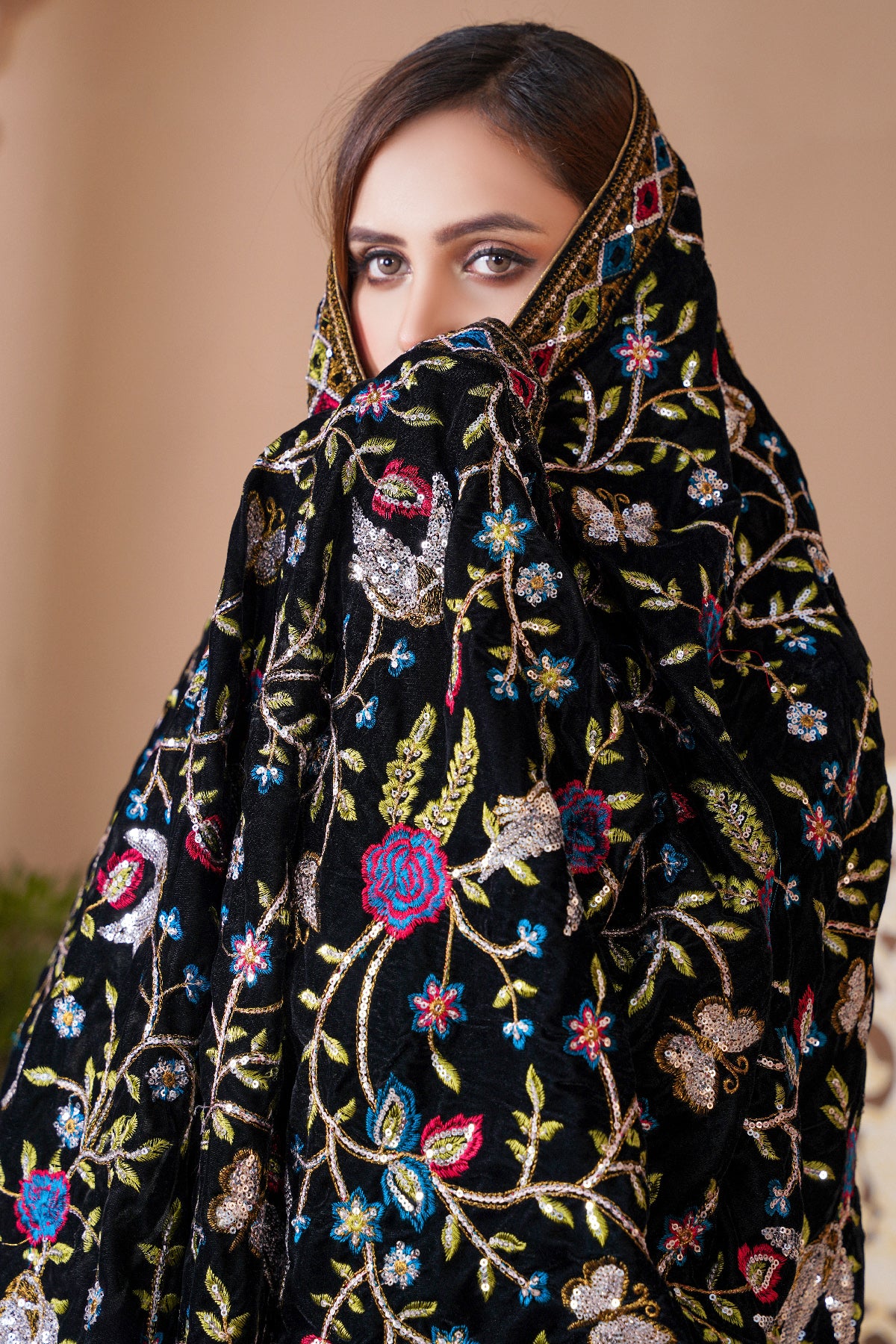 ShawlColor: BlackFabric: Premium Micro Velvet, Embroidered